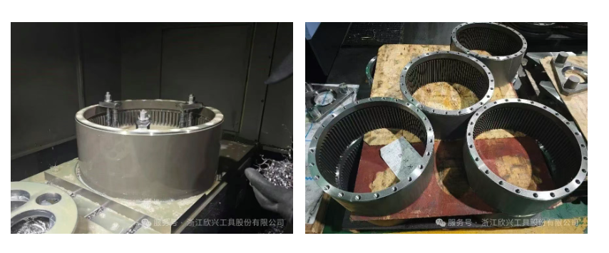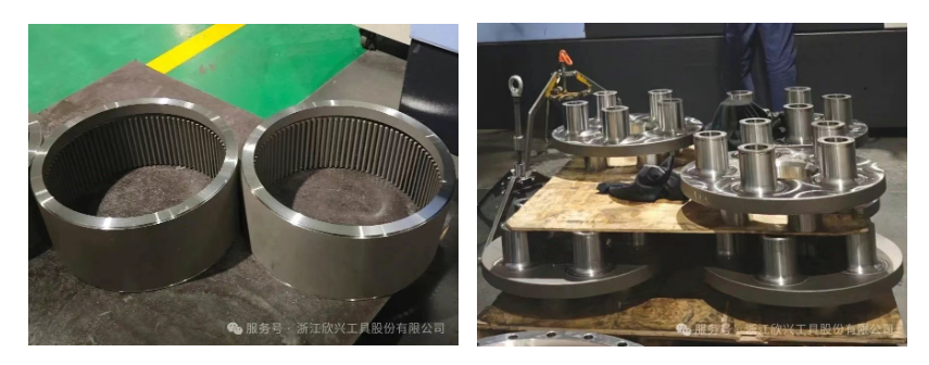 本案例客戶是國(guó)內(nèi)**A股上市公司,工件是42CrMo齒圈,表面硬化處理,硬度HRC50。需要在齒圈端面加工螺紋孔,常用規(guī)格有M10×1.5、M18×2.5、M24×3.0等,螺紋孔深度20~30mm。